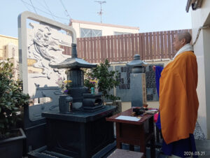 令和8年3月21日圓乗寺永代供養墓を含めた美原東ロイヤル第2期区画永代供養墓の春季彼岸供養会を行いました。お参りの皆様にご焼香参加いただき、埋葬者の冥福をお祈りいたしました。導師は善宗寺ご住職です。