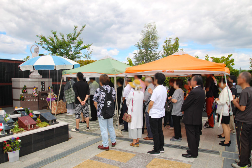 平成29年8月13日 永代供養墓「永」を含めた美原東ロイヤル第3期区画永代供養墓の盂蘭盆供養会を永観音像前にて行いました。大勢の皆様にご焼香参加いただき、埋葬者の冥福をお祈りいたしました。導師は佛乗寺ご住職です。
